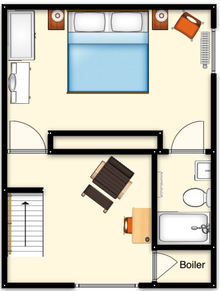 The layout Ground floor – lounge, kitchen, entrance to garden First floor – front door, bathroom & superking / twin bedroom Second floor – study area, double bedroom & ensuite shower room