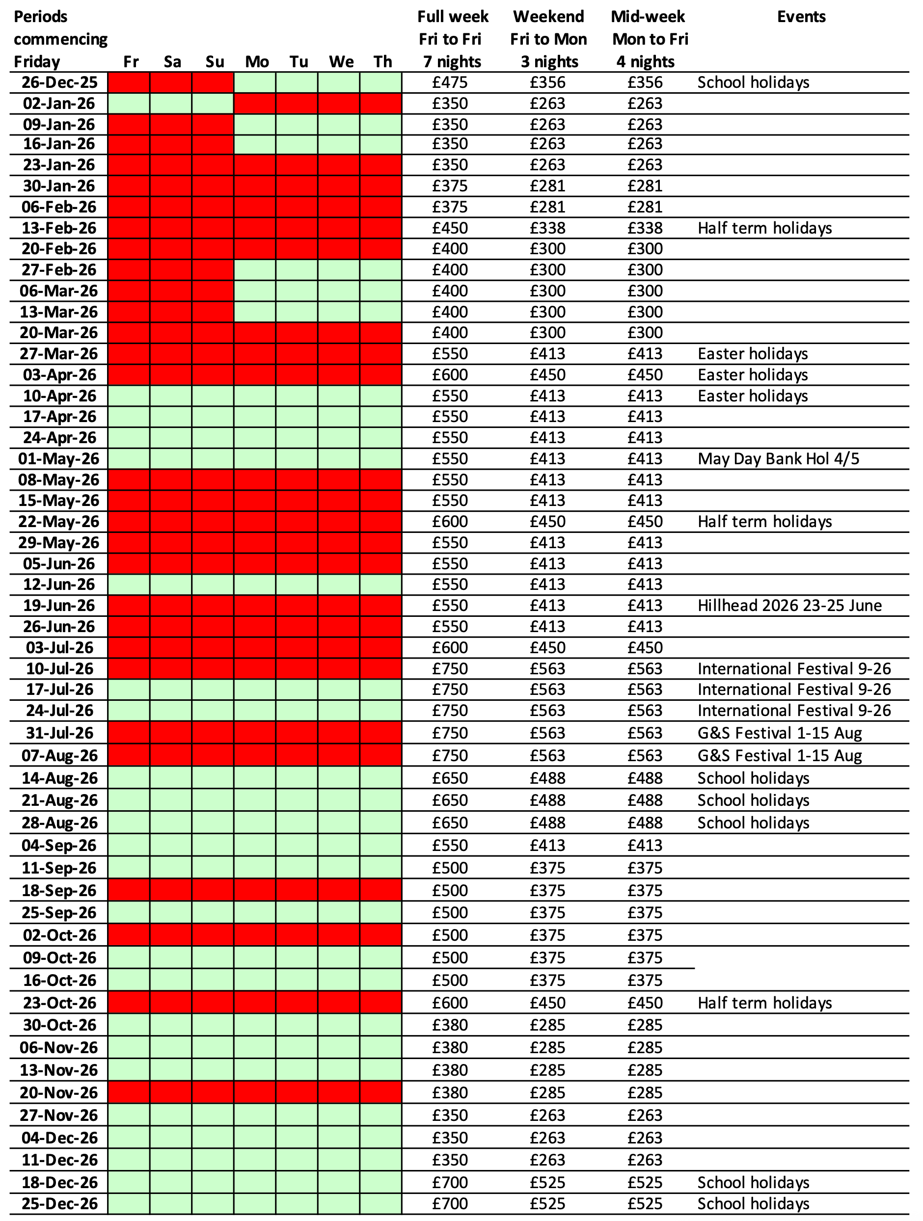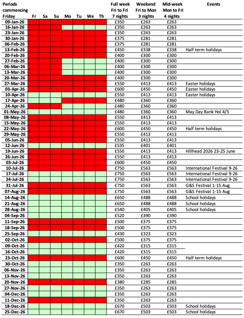 If you find a more competitive price on another website please let us know – we’ll price match and offer you an upgraded Welcome Pack and early check in if you book direct!