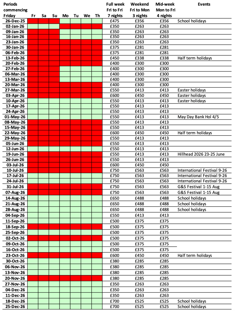 Changeover days are typically Monday or Friday. Short breaks are charged at 75% of the full weekly rate for a long weekend (Friday to Monday) or a midweek break (Monday to Friday). Guests are welcome to arrive from 15:00 onwards, departure is by 10:00. If you’ve got any questions about The Servants’ Quarters, or would like to enquire about a booking please get in touch via our contacts page.